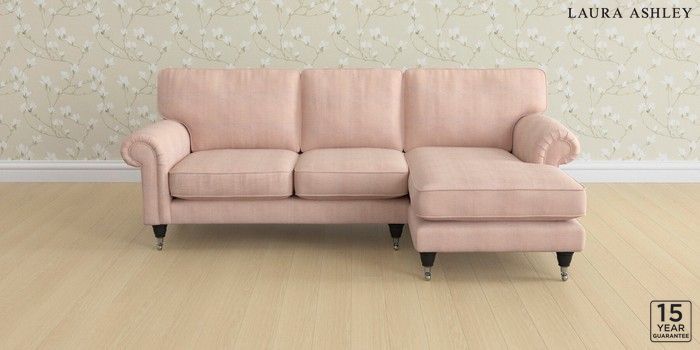 6.12.1 Buy Kingston by Laura Ashley Medium Sofa Chaise - Right Hand Edwin Chenille Blush Pink Low Chrome Castor - Black from the Next UK online shop Click here to use our accessible website