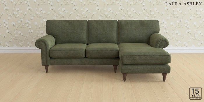 6.12.1 Buy Kingston by Laura Ashley Medium Sofa Chaise - Right Hand Edwin Chenille Hedgerow Green Low Turned - Chestnut from the Next UK online shop Click here to use our accessible website