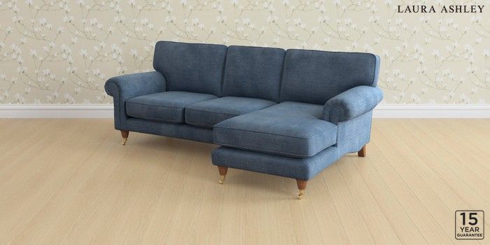 6.12.1 Buy Kingston by Laura Ashley Medium Sofa Chaise - Right Hand Edwin Chenille Seaspray Blue Low Brass Castor - Teak from the Next UK online shop Click here to use our accessible website