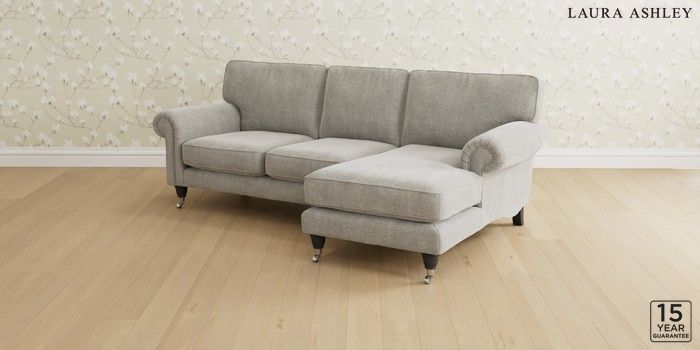 6.12.13 Buy Kingston by Laura Ashley Medium Sofa Chaise - Right Hand Edwin Chenille Silver Grey Low Brass Castor - Black from the Next UK online shop Click here to use our accessible website