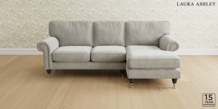 6.12.1 Buy Kingston by Laura Ashley Medium Sofa Chaise - Right Hand Edwin Chenille Silver Grey Low Chrome Castor - Black from the Next UK online shop Click here to use our accessible website