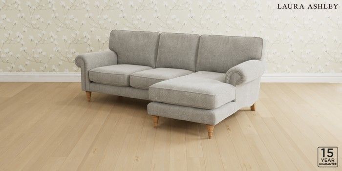 6.12.1 Buy Kingston by Laura Ashley Medium Sofa Chaise - Right Hand Edwin Chenille Silver Grey Low Turned - Light Oak from the Next UK online shop Click here to use our accessible website
