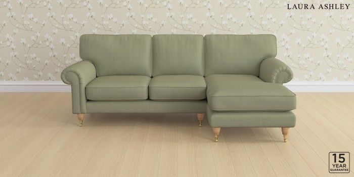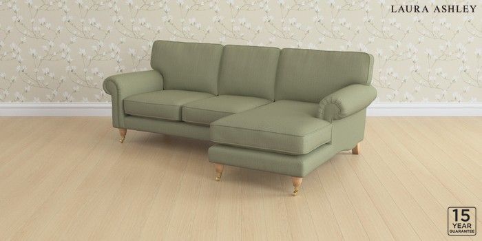 6.12.1 Buy Kingston by Laura Ashley Medium Sofa Chaise - Right Hand Edwin Herringbone Hedgerow Green Low Brass Castor - Light Oak from the Next UK online shop Click here to use our accessible website