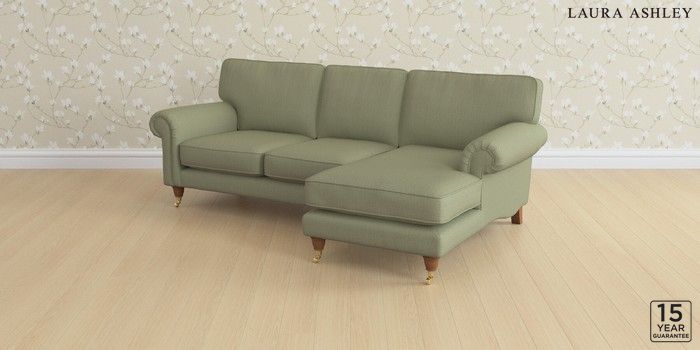 6.12.1 Buy Kingston by Laura Ashley Medium Sofa Chaise - Right Hand Edwin Herringbone Hedgerow Green Low Brass Castor - Teak from the Next UK online shop Click here to use our accessible website