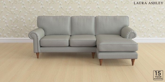 6.12.1 Buy Kingston by Laura Ashley Medium Sofa Chaise - Right Hand Edwin Herringbone Pale Steel Grey Low Turned - Teak from the Next UK online shop Click here to use our accessible website