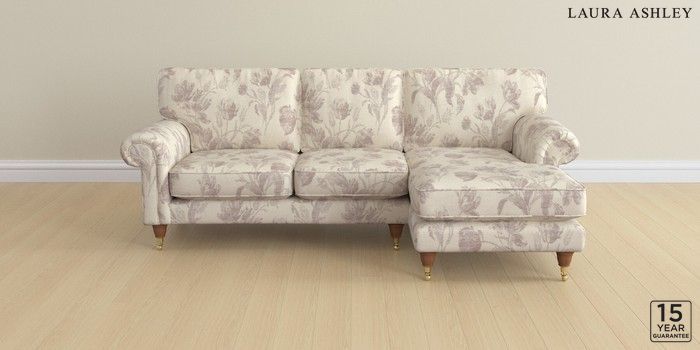 6.12.1 Buy Kingston by Laura Ashley Medium Sofa Chaise - Right Hand Gosford Weave Dusky Plum Purple Low Brass Castor - Teak from the Next UK online shop Click here to use our accessible website