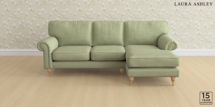 6.12.1 Buy Kingston by Laura Ashley Medium Sofa Chaise - Right Hand Kinsham Hedgerow Green Low Brass Castor - Light Oak from the Next UK online shop Click here to use our accessible website