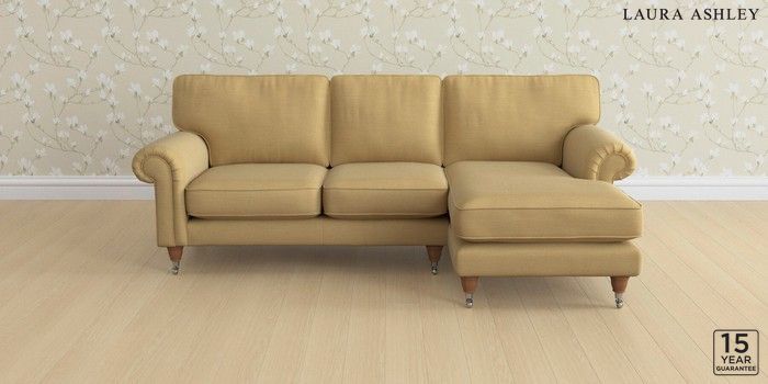 6.12.1 Buy Kingston by Laura Ashley Medium Sofa Chaise - Right Hand Kinsham Ochre Yellow Low Chrome Castor - Teak from the Next UK online shop Click here to use our accessible website