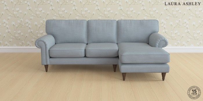 6.12.1 Buy Kingston by Laura Ashley Medium Sofa Chaise - Right Hand Kinsham Seaspray Blue Low Turned - Chestnut from the Next UK online shop Click here to use our accessible website