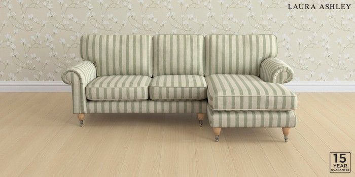 6.12.1 Buy Kingston by Laura Ashley Medium Sofa Chaise - Right Hand Kinsham Stripe Hedgerow Green Low Chrome Castor - Light Oak from the Next UK online shop Click here to use our accessible website