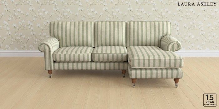 6.12.1 Buy Kingston by Laura Ashley Medium Sofa Chaise - Right Hand Kinsham Stripe Hedgerow Green Low Chrome Castor - Teak from the Next UK online shop Click here to use our accessible website