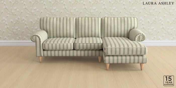 6.12.1 Buy Kingston by Laura Ashley Medium Sofa Chaise - Right Hand Kinsham Stripe Hedgerow Green Low Turned - Light Oak from the Next UK online shop Click here to use our accessible website