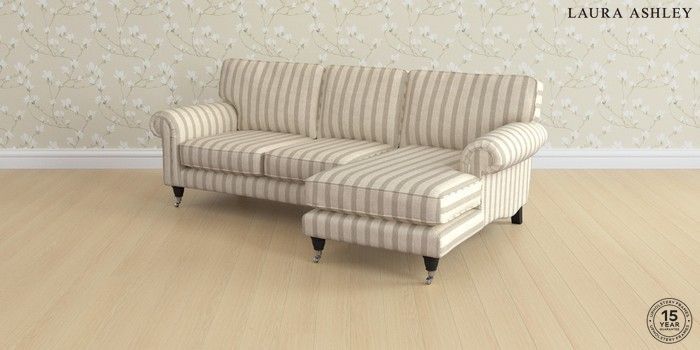 6.12.1 Buy Kingston by Laura Ashley Medium Sofa Chaise - Right Hand Kinsham Stripe Natural Low Chrome Castor - Black from the Next UK online shop Click here to use our accessible website