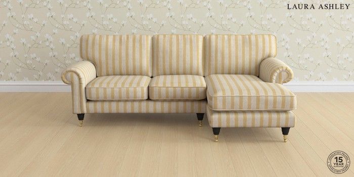 7.0.3 Buy Kingston by Laura Ashley Medium Sofa Chaise - Right Hand Kinsham Stripe Ochre Yellow Low Brass Castor - Black from the Next UK online shop Click here to use our accessible website