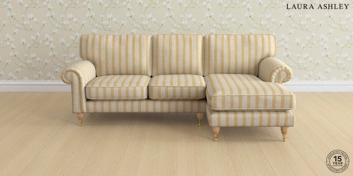 7.0.3 Buy Kingston by Laura Ashley Medium Sofa Chaise - Right Hand Kinsham Stripe Ochre Yellow Low Brass Castor - Light Oak from the Next UK online shop Click here to use our accessible website