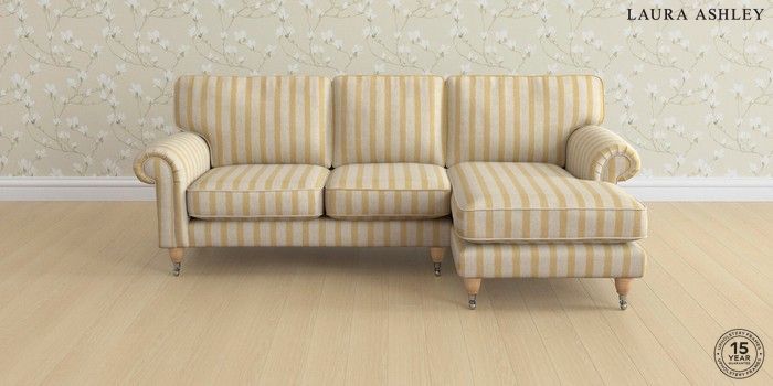 7.0.3 Buy Kingston by Laura Ashley Medium Sofa Chaise - Right Hand Kinsham Stripe Ochre Yellow Low Chrome Castor - Light Oak from the Next UK online shop Click here to use our accessible website