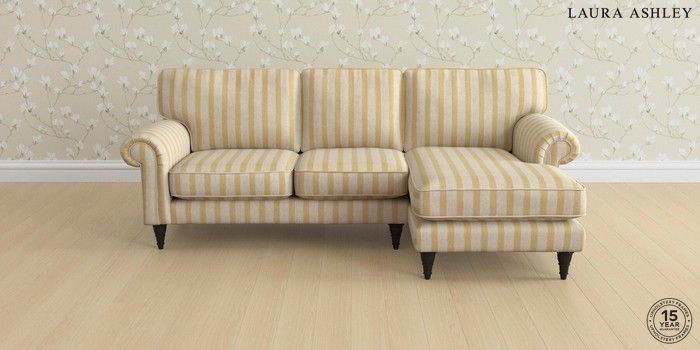 7.0.3 Buy Kingston by Laura Ashley Medium Sofa Chaise - Right Hand Kinsham Stripe Ochre Yellow Low Turned - Black from the Next UK online shop Click here to use our accessible website