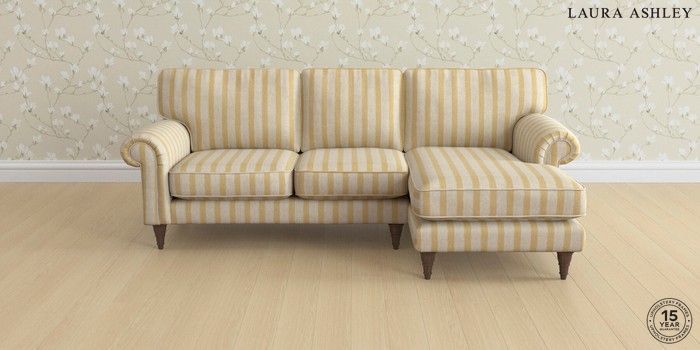 7.0.3 Buy Kingston by Laura Ashley Medium Sofa Chaise - Right Hand Kinsham Stripe Ochre Yellow Low Turned - Chestnut from the Next UK online shop Click here to use our accessible website