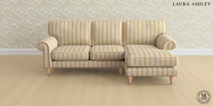 7.0.3 Buy Kingston by Laura Ashley Medium Sofa Chaise - Right Hand Kinsham Stripe Ochre Yellow Low Turned - Light Oak from the Next UK online shop Click here to use our accessible website