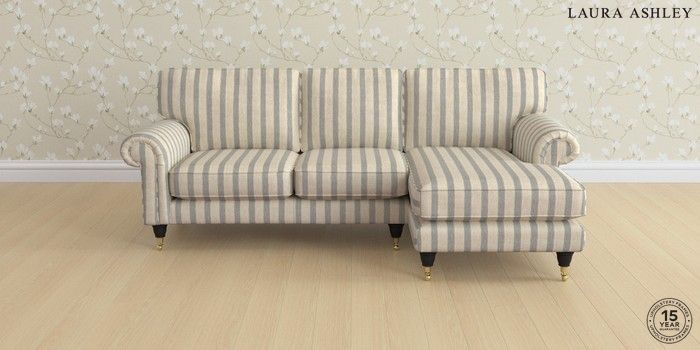 6.12.1 Buy Kingston by Laura Ashley Medium Sofa Chaise - Right Hand Kinsham Stripe Seaspray Blue Low Brass Castor - Black from the Next UK online shop Click here to use our accessible website