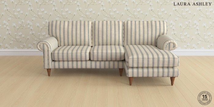 6.12.1 Buy Kingston by Laura Ashley Medium Sofa Chaise - Right Hand Kinsham Stripe Seaspray Blue Low Turned - Teak from the Next UK online shop Click here to use our accessible website