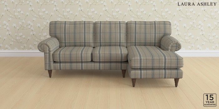6.12.13 Buy Kingston by Laura Ashley Medium Sofa Chaise - Right Hand Longstowe Check French Grey Low Turned - Chestnut from the Next UK online shop Click here to use our accessible website