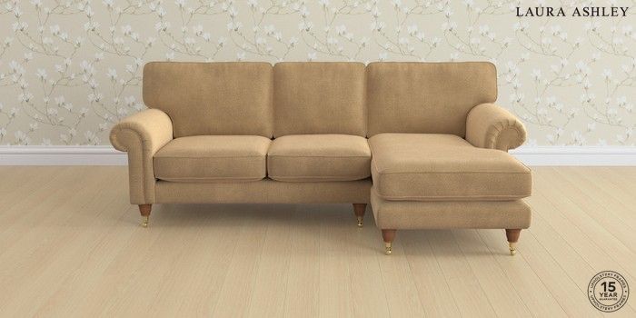6.12.1 Buy Kingston by Laura Ashley Medium Sofa Chaise - Right Hand Lundar Chenille Caramel Natural Low Brass Castor - Teak from the Next UK online shop Click here to use our accessible website