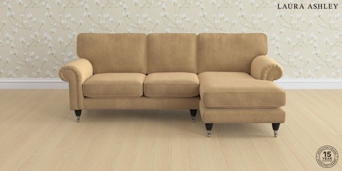 6.12.1 Buy Kingston by Laura Ashley Medium Sofa Chaise - Right Hand Lundar Chenille Caramel Natural Low Chrome Castor - Black from the Next UK online shop Click here to use our accessible website