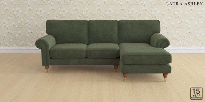 6.12.1 Buy Kingston by Laura Ashley Medium Sofa Chaise - Right Hand Lundar Chenille Ivy Green Low Brass Castor - Teak from the Next UK online shop Click here to use our accessible website