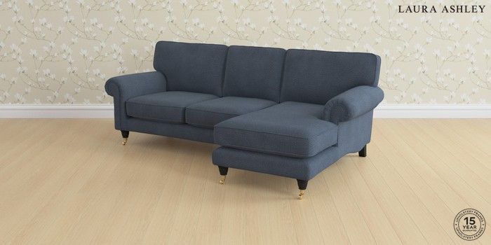 6.12.1 Buy Kingston by Laura Ashley Medium Sofa Chaise - Right Hand Lundar Chenille Navy Blue Low Brass Castor - Black from the Next UK online shop Click here to use our accessible website