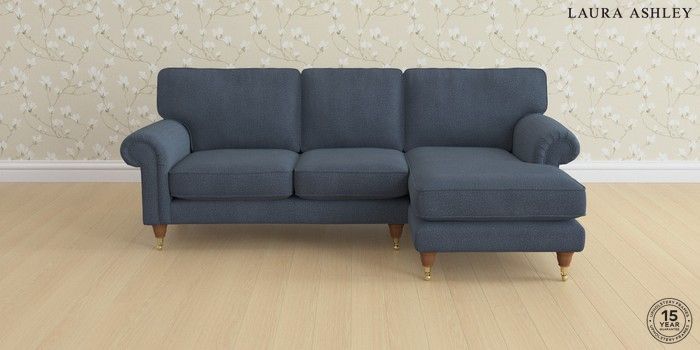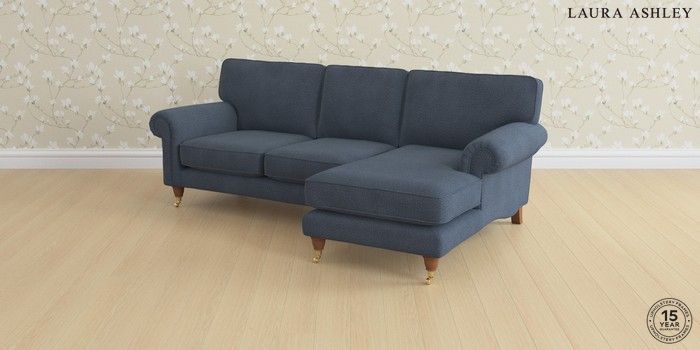 6.12.1 Buy Kingston by Laura Ashley Medium Sofa Chaise - Right Hand Lundar Chenille Navy Blue Low Brass Castor - Teak from the Next UK online shop Click here to use our accessible website
