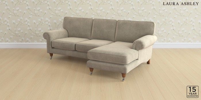 6.12.13 Buy Kingston by Laura Ashley Medium Sofa Chaise - Right Hand Lundar Chenille Truffle Natural Low Chrome Castor - Teak from the Next UK online shop Click here to use our accessible website