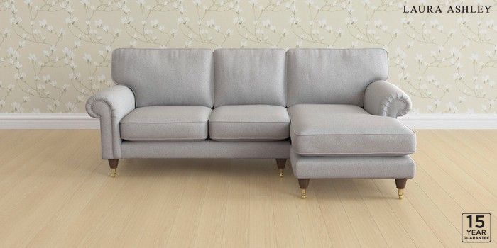 6.12.1 Buy Kingston by Laura Ashley Medium Sofa Chaise - Right Hand Wooton Pale Steel Grey Low Brass Castor - Chestnut from the Next UK online shop Click here to use our accessible website