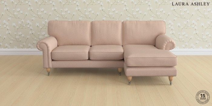 6.12.1 Buy Kingston by Laura Ashley Medium Sofa Chaise - Right Hand Melbreak Geo Chalk Pink Low Chrome Castor - Light Oak from the Next UK online shop Click here to use our accessible website