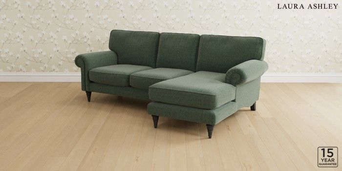 6.12.1 Buy Kingston by Laura Ashley Medium Sofa Chaise - Right Hand Nantmor Fern Green Low Turned - Black from the Next UK online shop Click here to use our accessible website