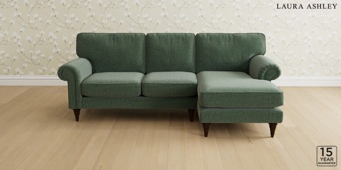 6.12.1 Buy Kingston by Laura Ashley Medium Sofa Chaise - Right Hand Nantmor Fern Green Low Turned - Chestnut from the Next UK online shop Click here to use our accessible website