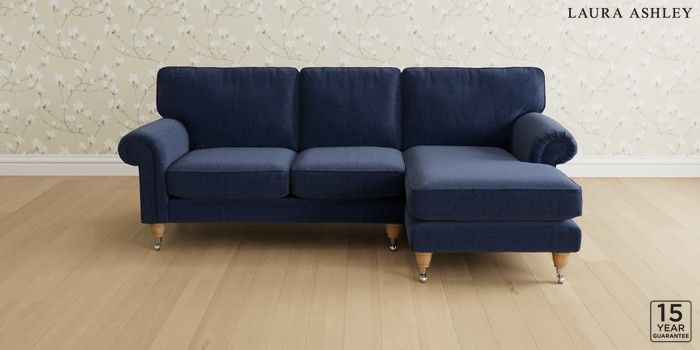 6.12.1 Buy Kingston by Laura Ashley Medium Sofa Chaise - Right Hand Nantmor Midnight Navy Low Chrome Castor - Light Oak from the Next UK online shop Click here to use our accessible website