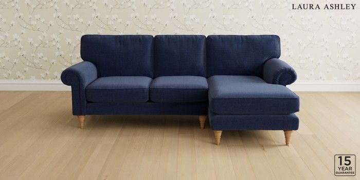 6.12.1 Buy Kingston by Laura Ashley Medium Sofa Chaise - Right Hand Nantmor Midnight Navy Low Turned - Light Oak from the Next UK online shop Click here to use our accessible website