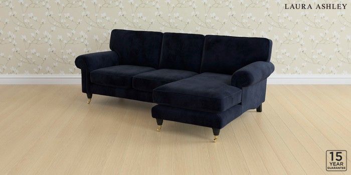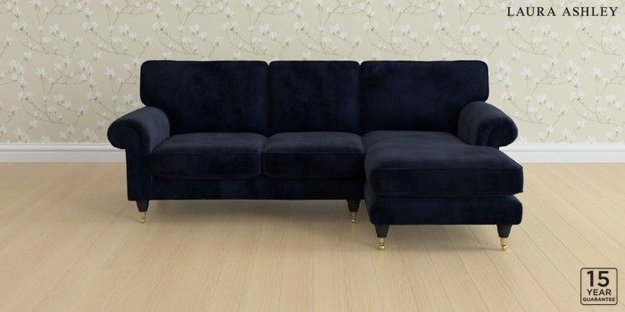 6.12.1 Buy Kingston by Laura Ashley Medium Sofa Chaise - Right Hand Orla Midnight Navy Low Brass Castor - Black from the Next UK online shop Click here to use our accessible website
