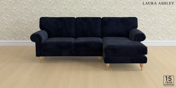 6.12.1 Buy Kingston by Laura Ashley Medium Sofa Chaise - Right Hand Orla Midnight Navy Low Brass Castor - Light Oak from the Next UK online shop Click here to use our accessible website