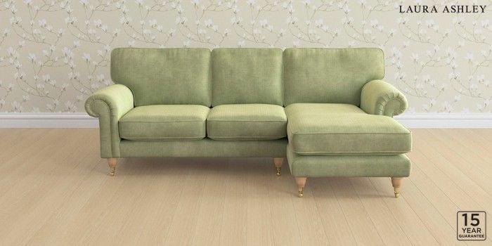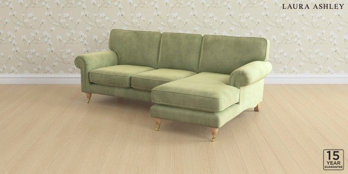 6.12.1 Buy Kingston by Laura Ashley Medium Sofa Chaise - Right Hand Orla Pale Hedgerow Green Low Brass Castor - Light Oak from the Next UK online shop Click here to use our accessible website