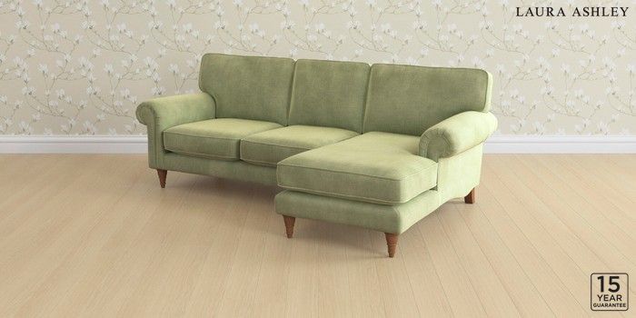 6.12.1 Buy Kingston by Laura Ashley Medium Sofa Chaise - Right Hand Orla Pale Hedgerow Green Low Turned - Teak from the Next UK online shop Click here to use our accessible website