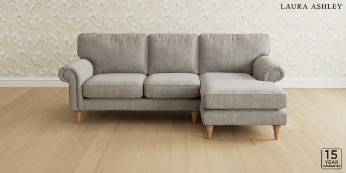 6.12.1 Buy Kingston by Laura Ashley Medium Sofa Chaise - Right Hand Orla Pale Steel Grey Low Turned - Light Oak from the Next UK online shop Click here to use our accessible website