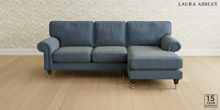 6.12.1 Buy Kingston by Laura Ashley Medium Sofa Chaise - Right Hand Orla Seaspray Blue Low Chrome Castor - Teak from the Next UK online shop Click here to use our accessible website