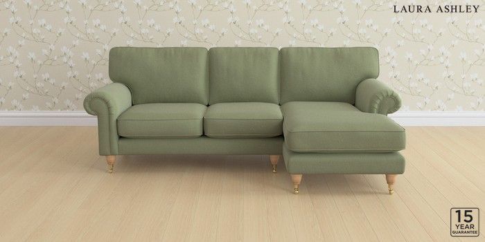 6.12.1 Buy Kingston by Laura Ashley Medium Sofa Chaise - Right Hand Peyton Hedgerow Green Low Brass Castor - Light Oak from the Next UK online shop Click here to use our accessible website