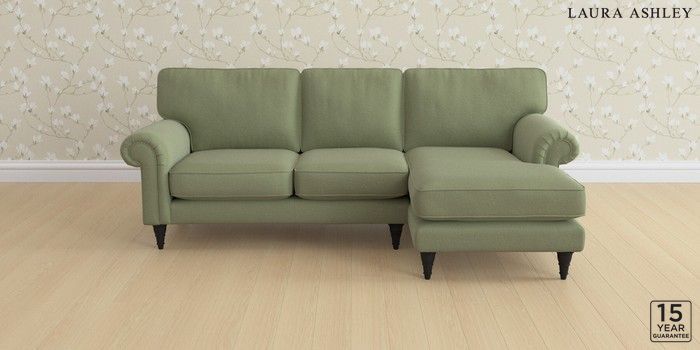 6.12.1 Buy Kingston by Laura Ashley Medium Sofa Chaise - Right Hand Peyton Hedgerow Green Low Turned - Black from the Next UK online shop Click here to use our accessible website