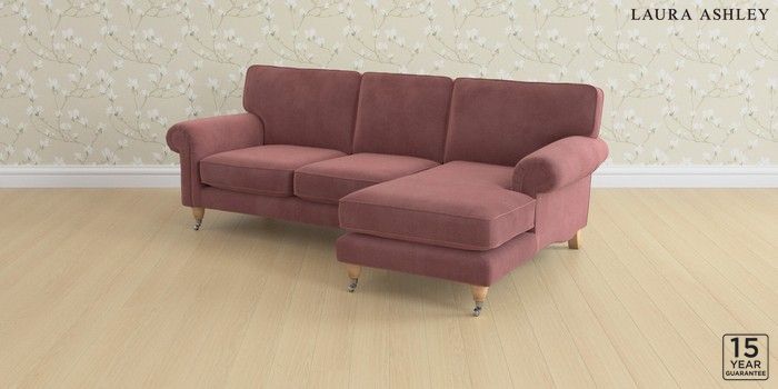 6.12.1 Buy Kingston by Laura Ashley Medium Sofa Chaise - Right Hand Peyton Plum Purple Low Chrome Castor - Light Oak from the Next UK online shop Click here to use our accessible website