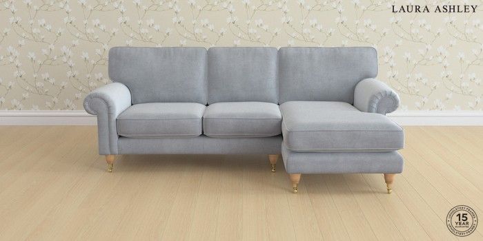 6.12.1 Buy Kingston by Laura Ashley Medium Sofa Chaise - Right Hand Peyton Powder Blue Low Brass Castor - Light Oak from the Next UK online shop Click here to use our accessible website