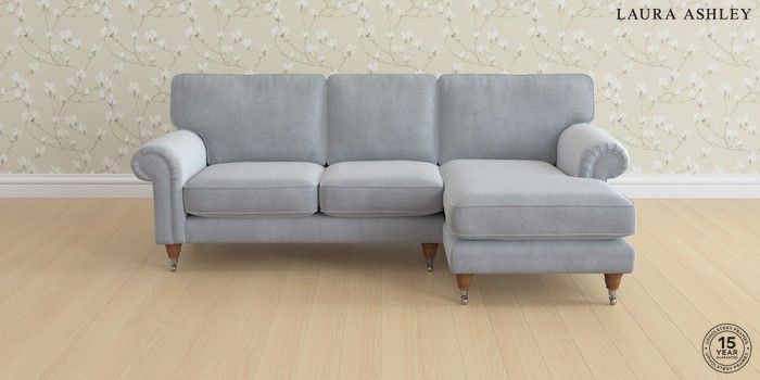 6.12.1 Buy Kingston by Laura Ashley Medium Sofa Chaise - Right Hand Peyton Powder Blue Low Chrome Castor - Teak from the Next UK online shop Click here to use our accessible website