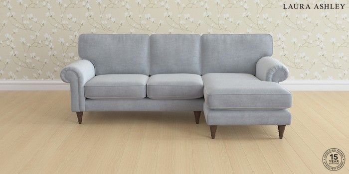 6.12.1 Buy Kingston by Laura Ashley Medium Sofa Chaise - Right Hand Peyton Powder Blue Low Turned - Chestnut from the Next UK online shop Click here to use our accessible website